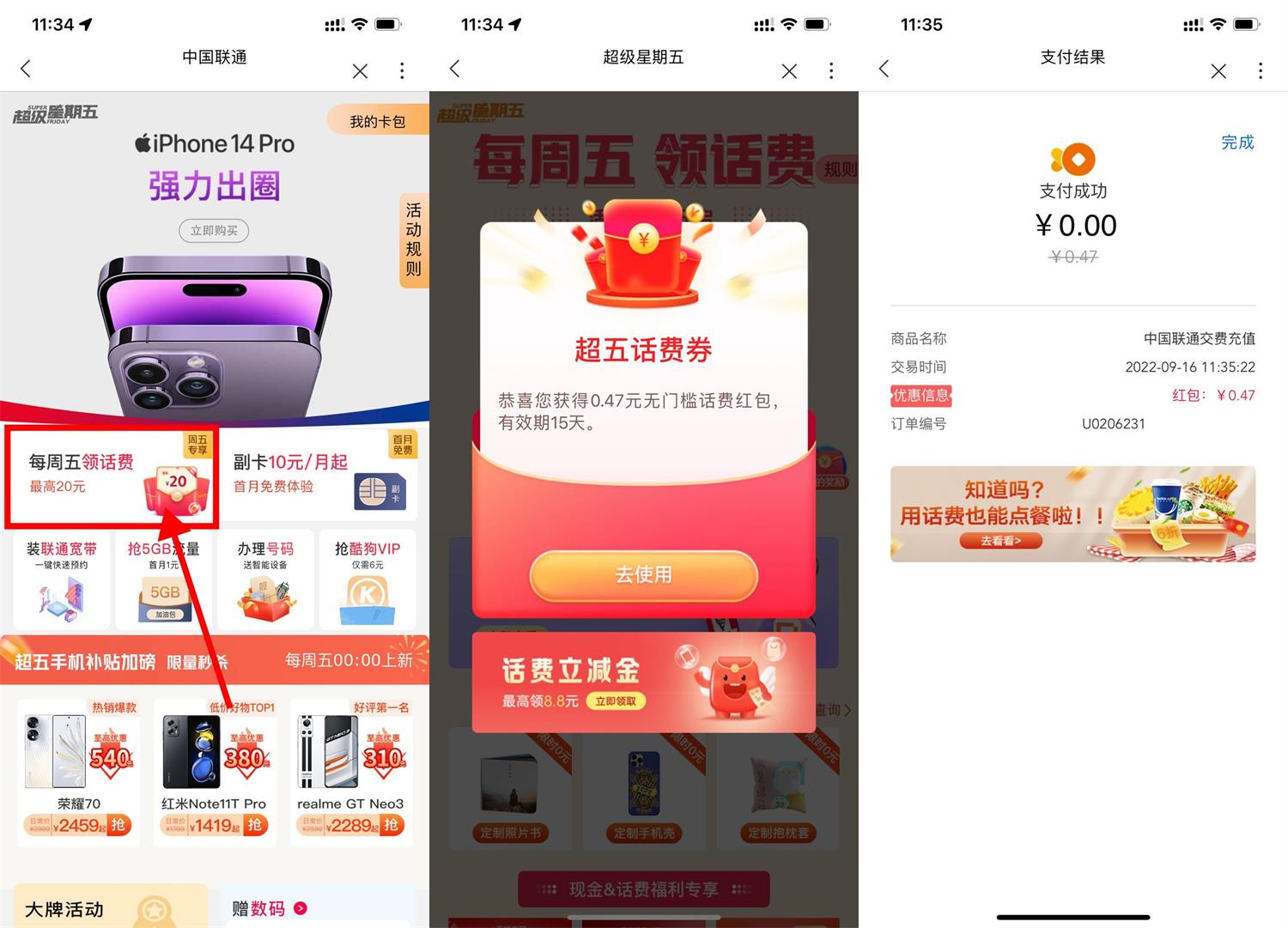1、联通APP->搜索“超级星期五”->联通支付日->直接抽随机话费券->返回首页充值缴费