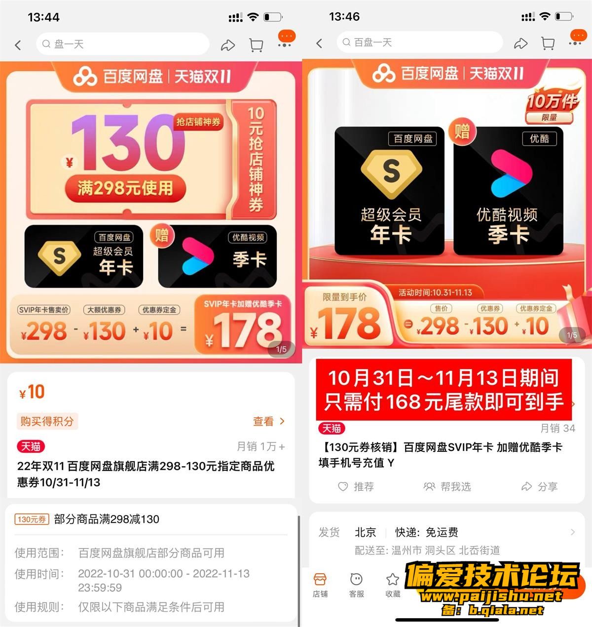 打开预售地址,10元购买130元抵扣券,券在10月31日之后生效,生效后付168元尾歀秒到,平时下载论坛的软件、游戏都用得到!