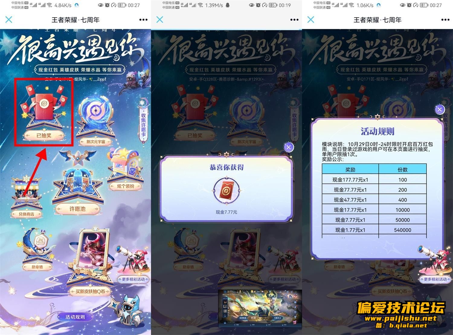 登陆王者荣耀->QQ打开地址->点第一个红包雨抽奖即可->兑换商店做任务集许愿卡还能兑换永久皮肤