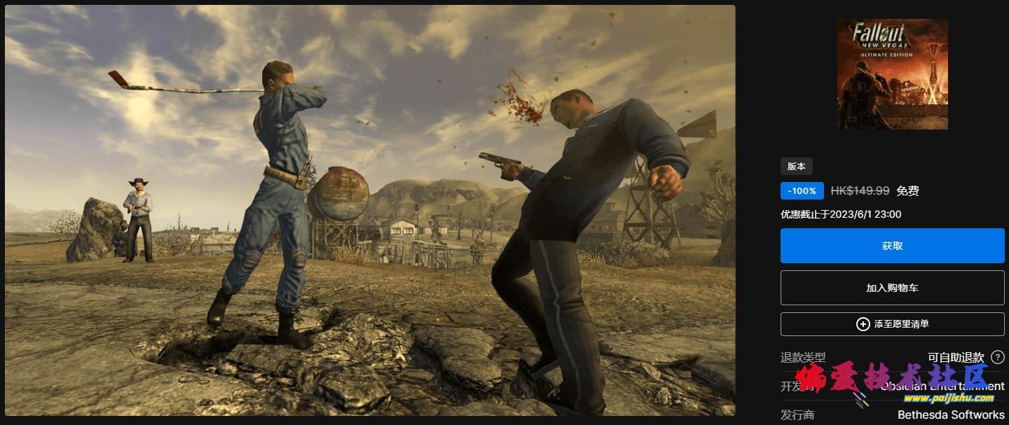 《辐射:新维加斯 - 终极版》是一款动作射击游戏,感受新维加斯的热度!就连核辐射也无法让罪恶之城的喧嚣慢下来。探索一望无际的沙漠荒地,领略只有在《Fallout》才能想象得到的大西南。 领取地址:https://store.epicgames.com/zh-CN/p/fallout-new-vegas--ultimate-edition 活动截止于2023/06/01 23:00