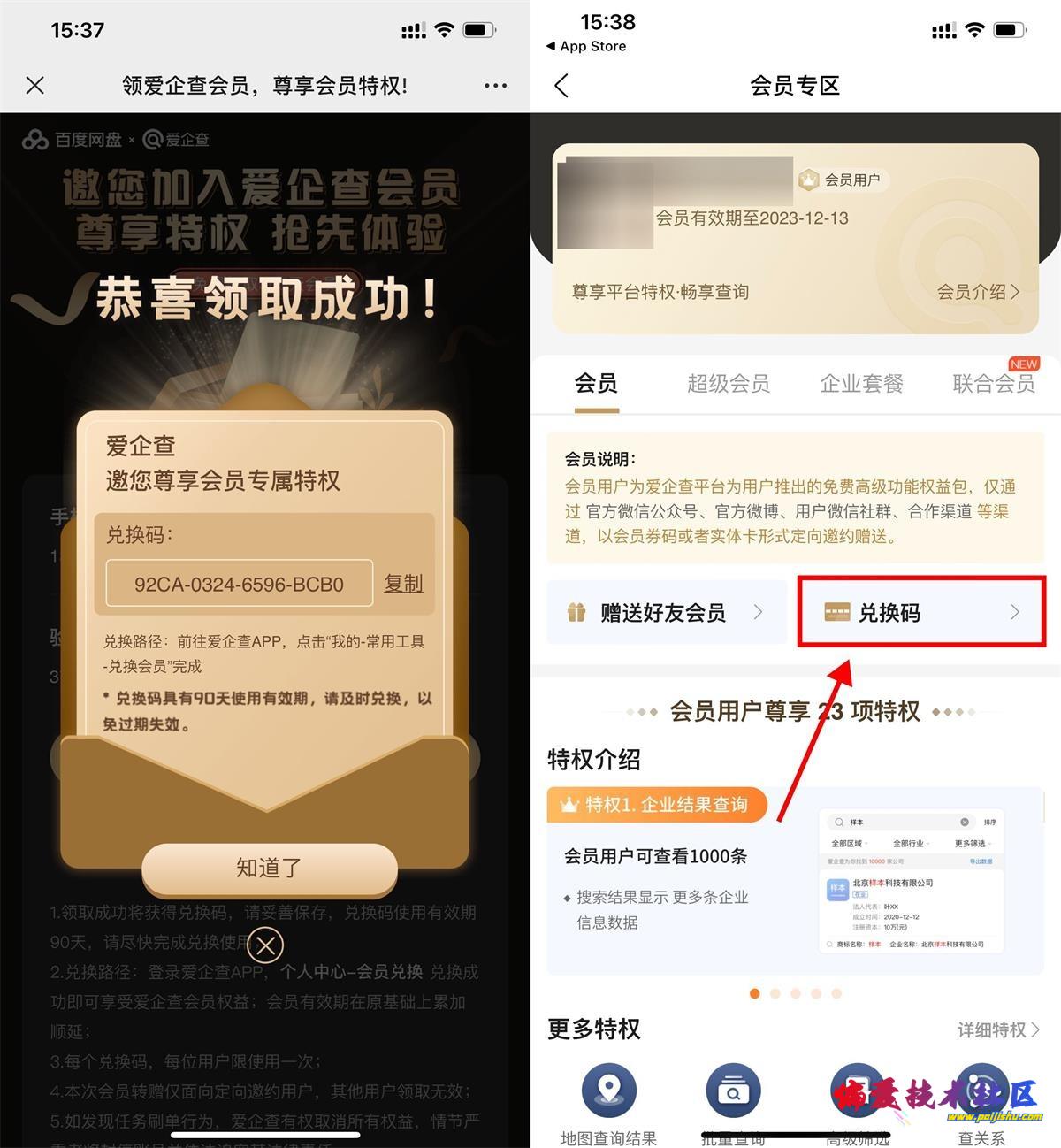 打开地址->输入手机号->直接领取兑换码->在“爱企查APP-我的-会员专区”中兑换,刚好有用到的可以领下!
