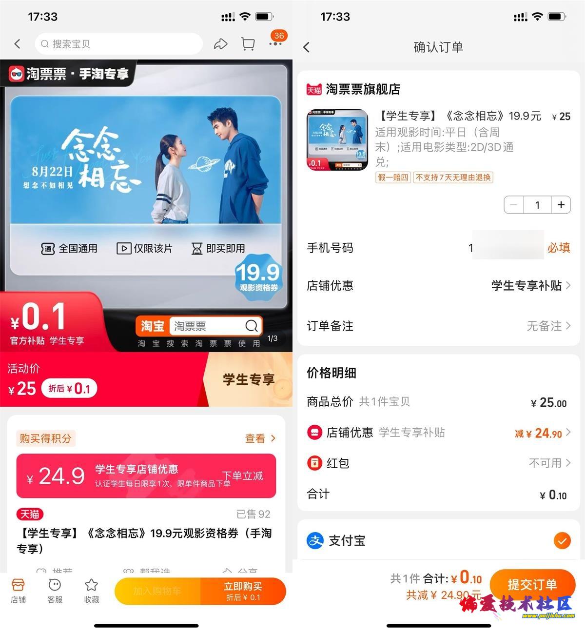 淘宝APP扫码->学生用户下单立减24.9,到手0.1元观看《念念相忘》