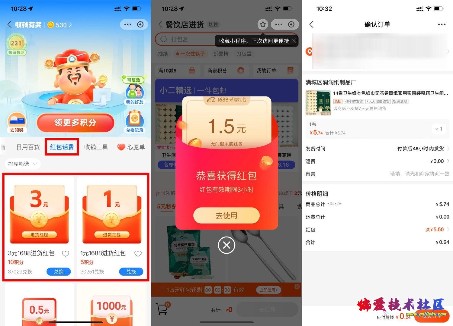 1、支付宝搜索“收钱有奖”->点“红包话费”兑换3+1亓1688红包