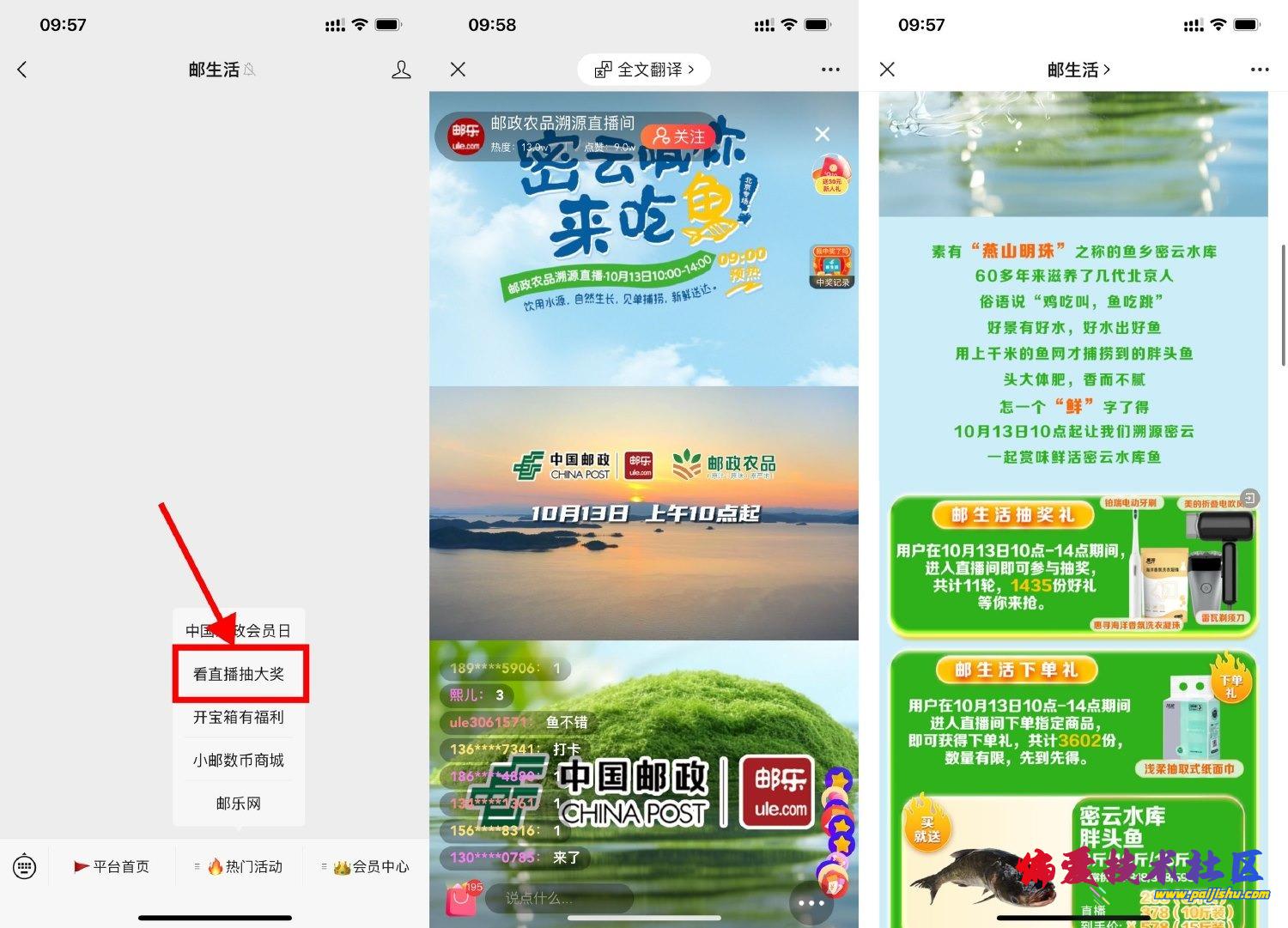 微信关注公众号“邮生活”->菜单栏“热门活动-看直播”->进入直播间后每30分钟有抽奖,抽中就是0元包邮到手实物