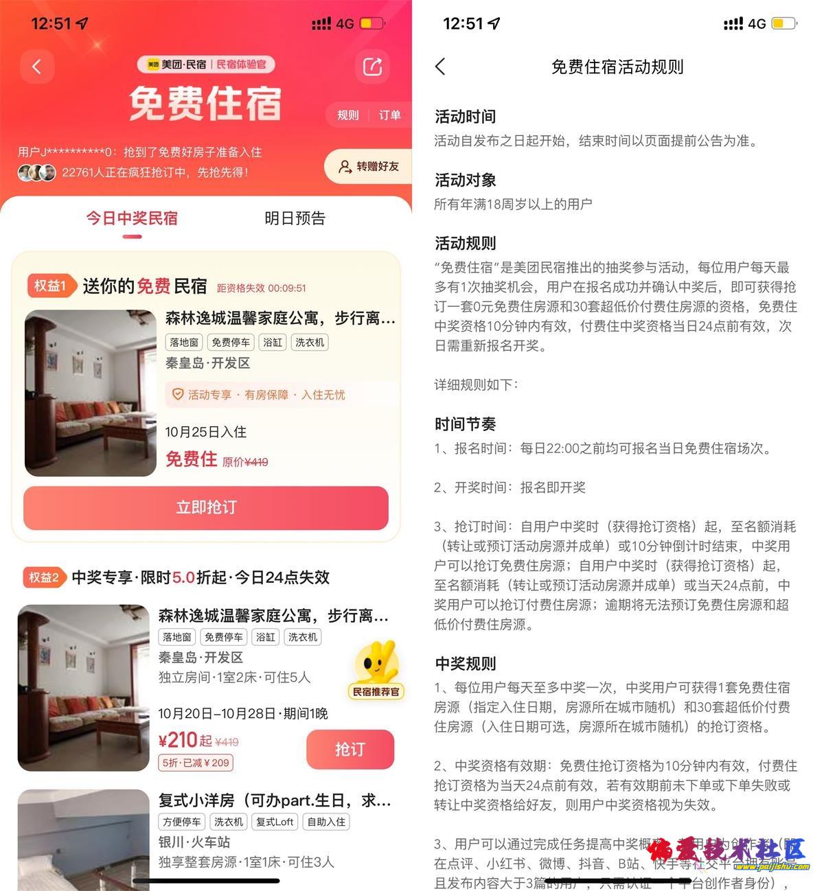 美团APP搜索“免/费住宿”->先去选一下城市->抽中民宿仅限当天使用,也可以转增给好友使用
