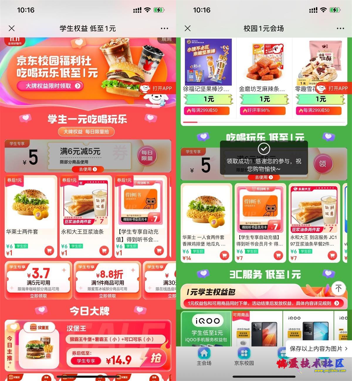 打开地址->下拉领6-5元券->可1元买华莱士汉堡、永和大王油条、优酷会员周卡等