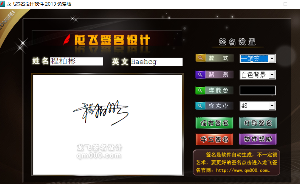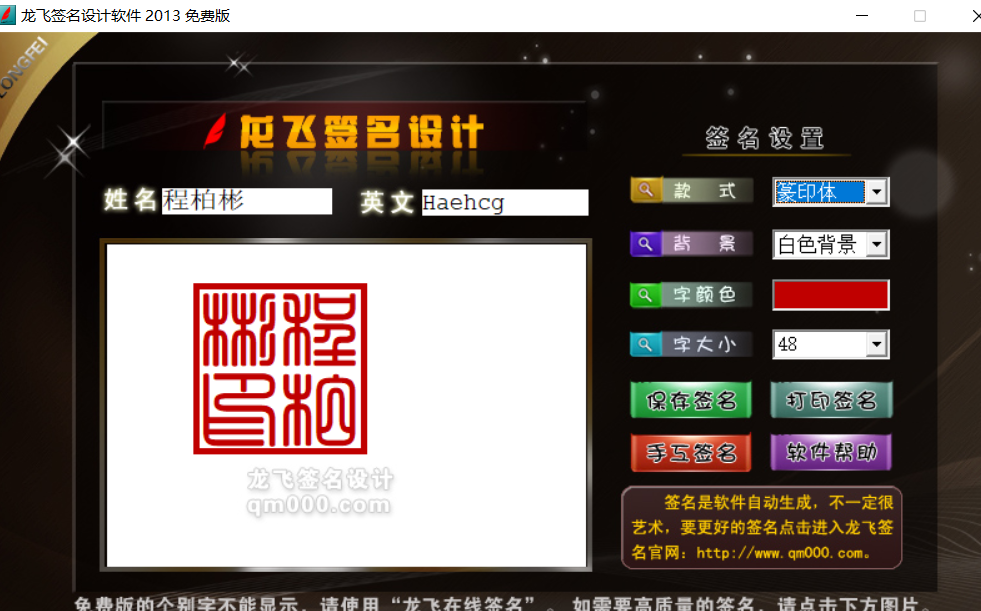 [综合福利] 龙飞签名设计软件2013免/费版--个性化签名设计软件 |
