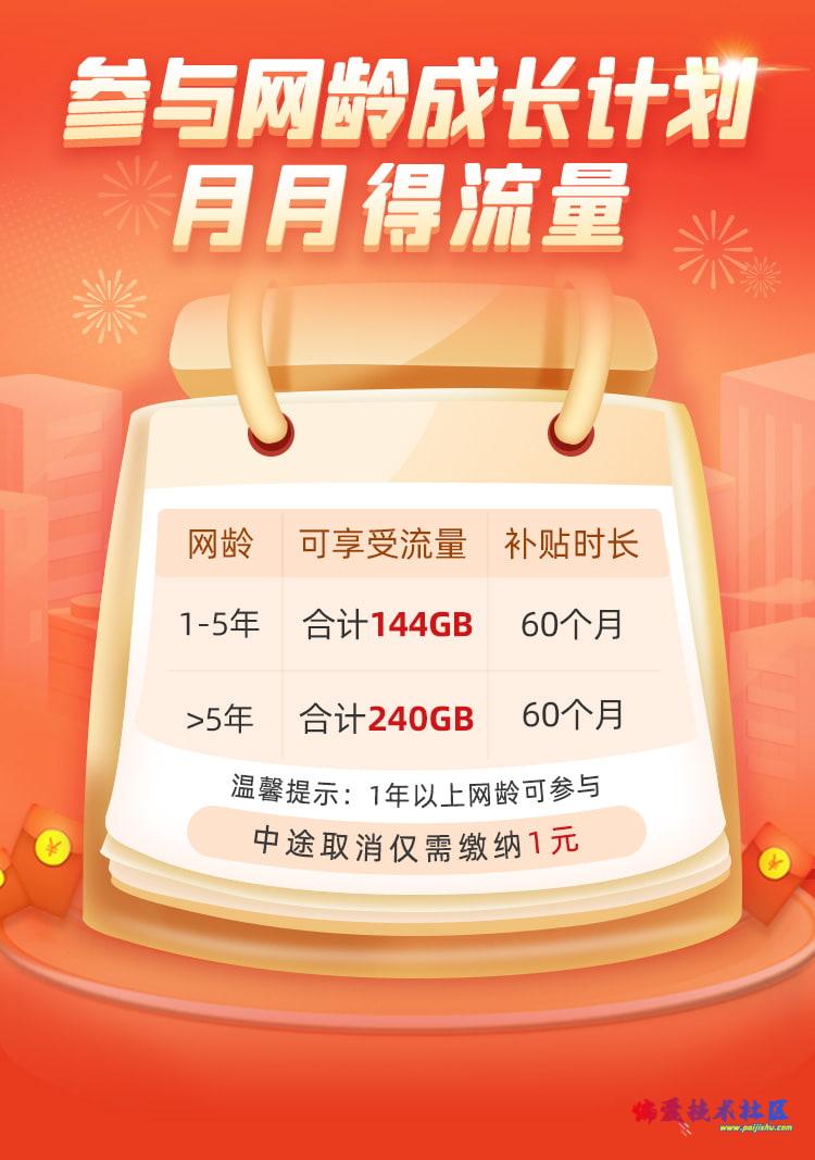[综合福利] 福建移动网龄成长计划流量月月得2-5G/月 |